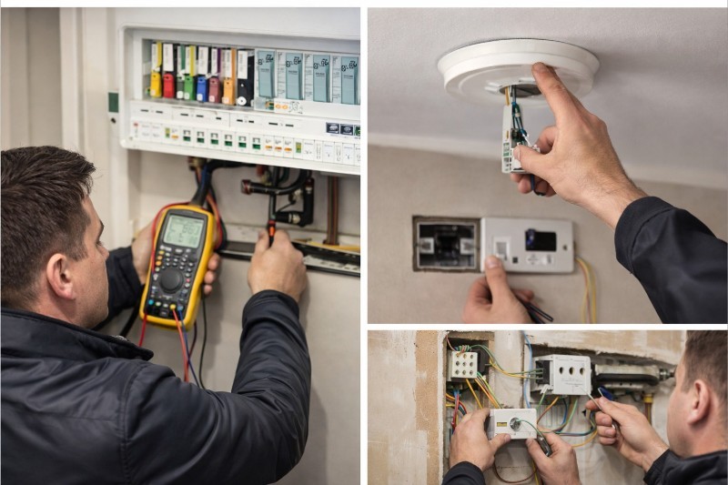 We provide electrical installation, rewiring, consumer unit replacement, EICR inspections, emergency electrical repairs, EV charger installation, lighting design, and fire alarm systems.